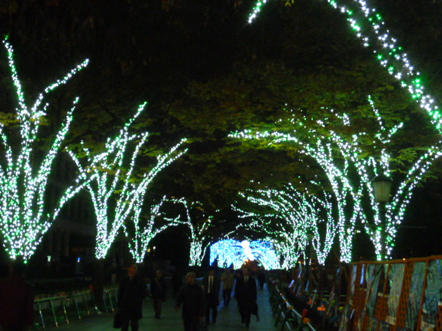 キラキラして綺麗でした。見物人は、仕事帰りの人が多いようでした。
