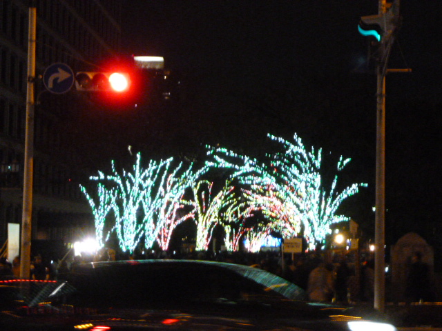 大阪市役所もキラキラです。人も多い多い、交通整理が有ります。