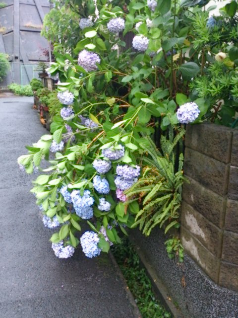 近所の紫陽花も開花しまくりで、重すぎで下方向に
