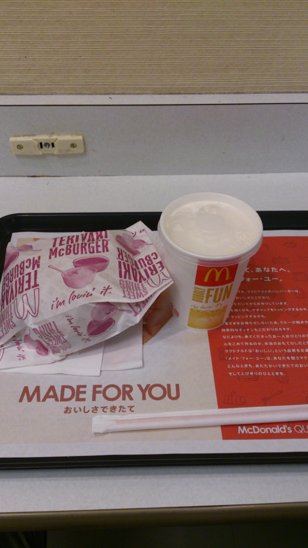 テリヤキバーガーとマックシェイク、時間も無かったのでこんな組み合わせです。
