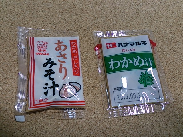 味噌汁は、会社の食堂でインスタントですが、無料で頂けるので、喜んでいただいております。有難や有難!!!「アサリ」「わかめ」の2種類ですが、「アサリ」の方が人気があるようですね