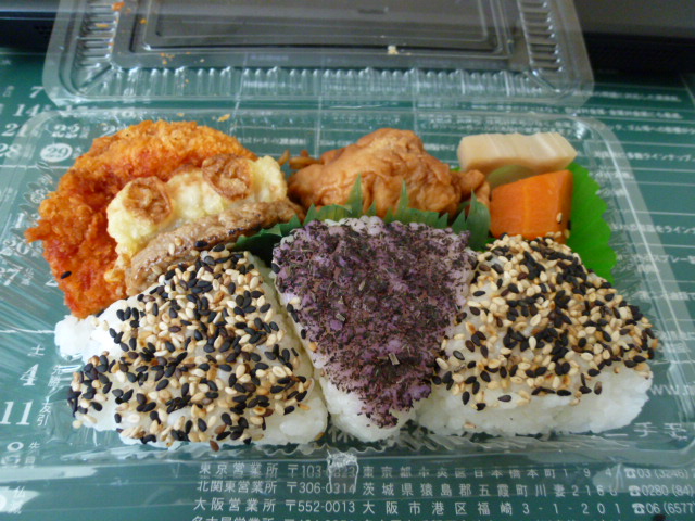 サイズは小さくなったが、おにぎりが3つで、おかずが増えていました。