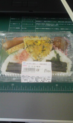 先ほどの記事で書きした100円ローソン弁当です、210円也